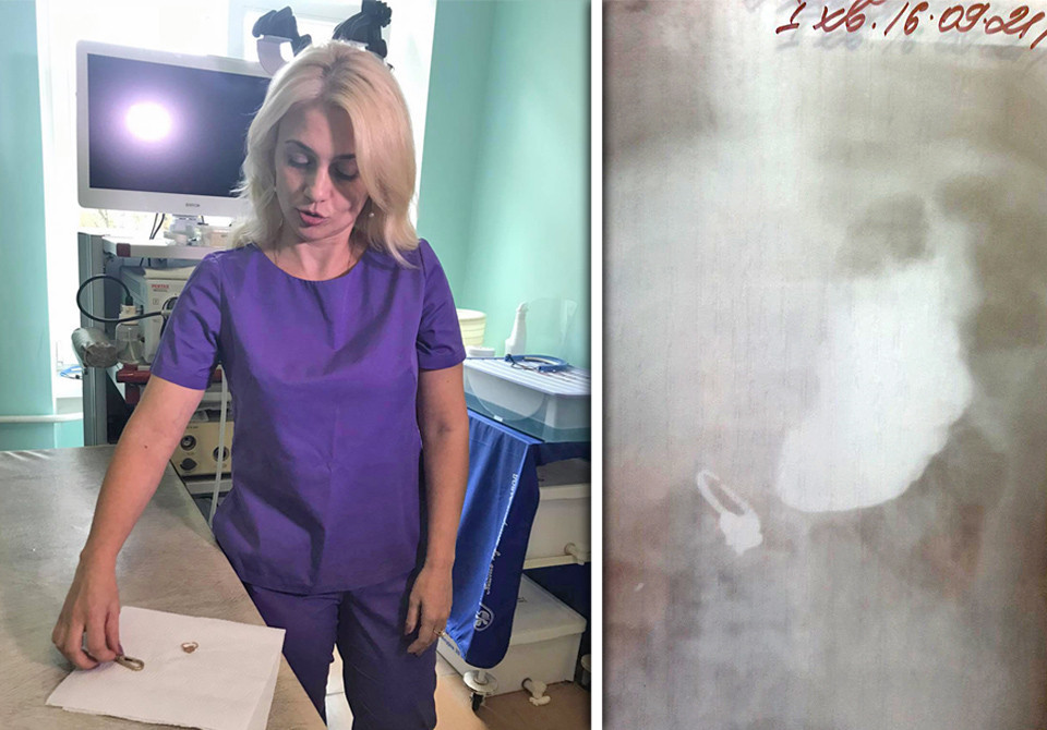 “Перстень постійно зачіпався гострими краями за краї кишки, але нам вдалося дістати його без операції. Правда, маніпуляція була досить тривалою, ми з ним змагались близько 2 годин”, – каже Марта Лучак.