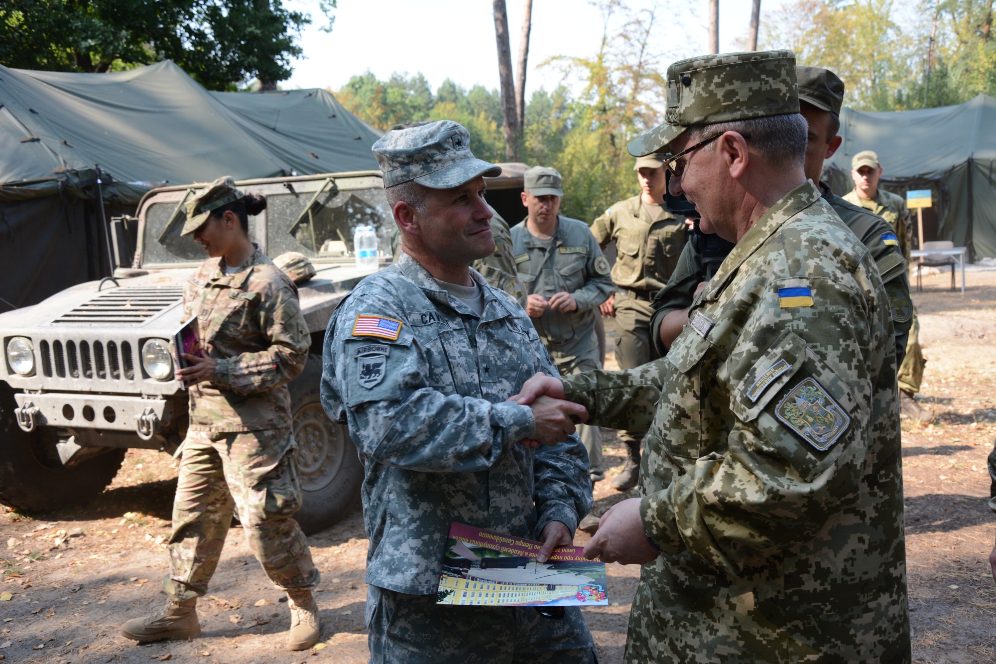 У Міжнародному центрі миротворчості та безпеки американські гості оглянули інфраструктуру військового містечка «Центральне». Вони побували у класі протидії саморобним вибуховим пристроям, ознайомилися із новим навчально-тренувальним комплексом із застосування засобів імітації стрільби «MILES» тощо.