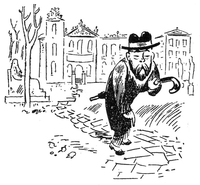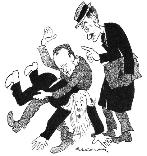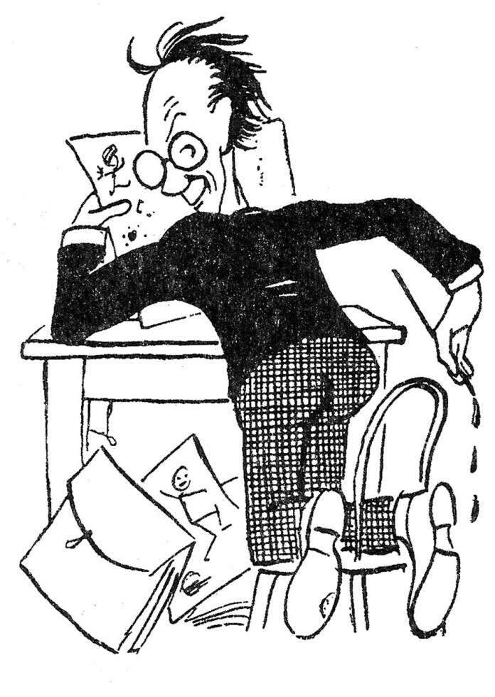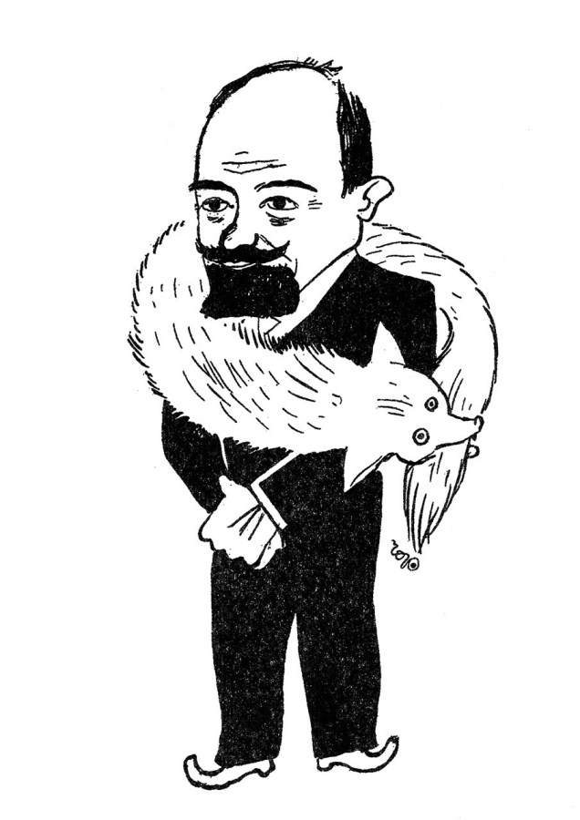 Знали кому дати: Проф. Олександер Колесса, відомий зі свого дипломатичного хисту, виграв при льосуванні нагород «Діла» срібного лиса. (На додаток пасту «Елєґант» на бороду). Рис. Р. Чорнія