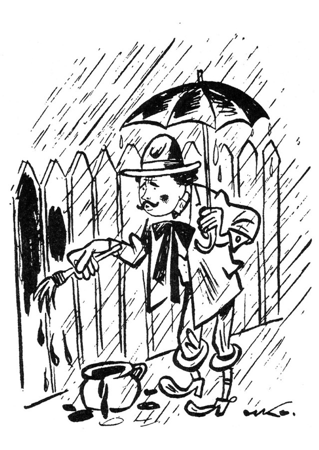 Літники в Гребенові заобсервували нашого відомого композитора Сяся Людкевича, як він у дощ сам собі малював паркан у своїй віллі в Гребенові.