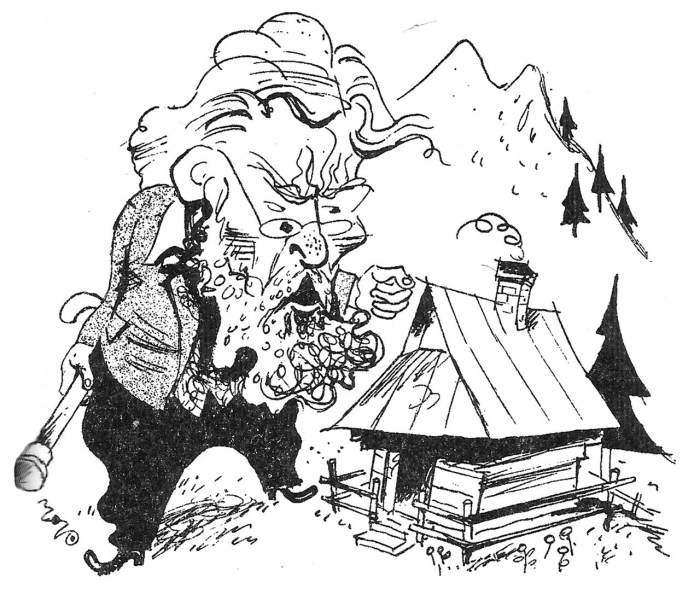 Олекса Новаківський (до себе): Хата нічого собі, але як я до неї влізу?! Рис. Р. Чорнія