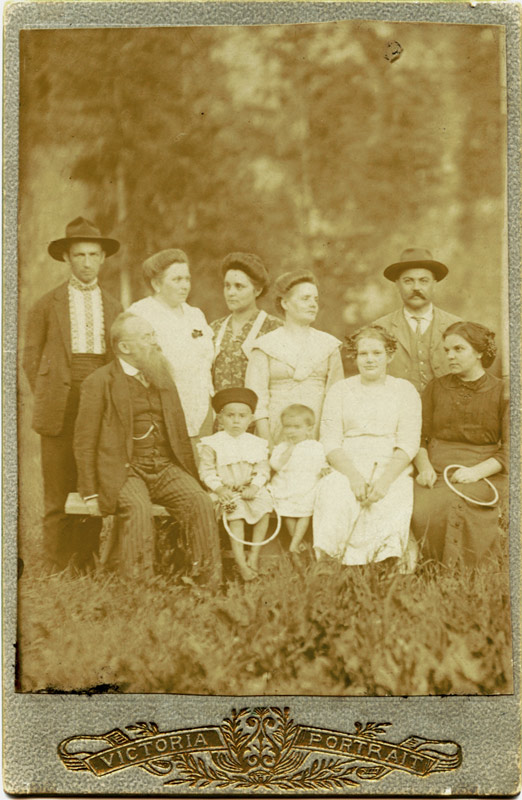 | Катерина Грушевська у колі рідних на відпочинку в Криворівні. Перший ряд сидять: Михайло Грушевський, Павло, Тетяна Калитовські – діти племінниці Марії Грушевської Стефанії, Катерина Грушевська, Марта Левицька (племінниця Марії Грушевської). Другий ряд стоять: Йосип Савицький (чоловік племінниці Марії Грушевської Людмили), Марія Грушевська, Людмила Савицька, Стефанія Калитовська (племінниці Марії Грушевської), Ієронім Калитовський (чоловік Стефанії). с. Криворівня. 16 серпня 1912 р. |
