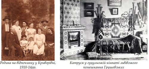 З іншого боку, літні відпочинкові відвідини родиною Грушевських села Криворівні на Гуцульщині, де була «кровать из массива сосны», перебування Катерини в оточенні кращих представників української інтелігенції (І.Франко, В.Гнатюк, М.Коцюбинський, Ф.Вовк, М.Мочульський, В.Дорошенко та ін.) впливали на формування її як свідомої українки.