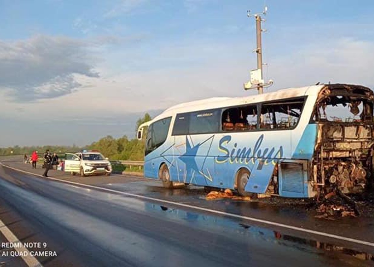 У Львівській області вранці 16 травня посеред дороги майже повністю згорів двоярусний рейсовий автобус Mersedes IRIZAR. На щастя, в інциденті ніхто не постраждав.
