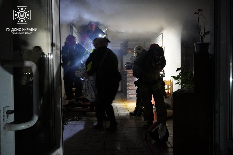 Пожежа спричинила сильне задимлення, тож, вогнеборці включились у спеціальні апарати захисту органів дихання та зору. На момент пожежі в будівлі перебували 28 літніх людей та двоє працівників закладу. Рятувальники вивели на повітря 27 людей та передали медикам для огляду.