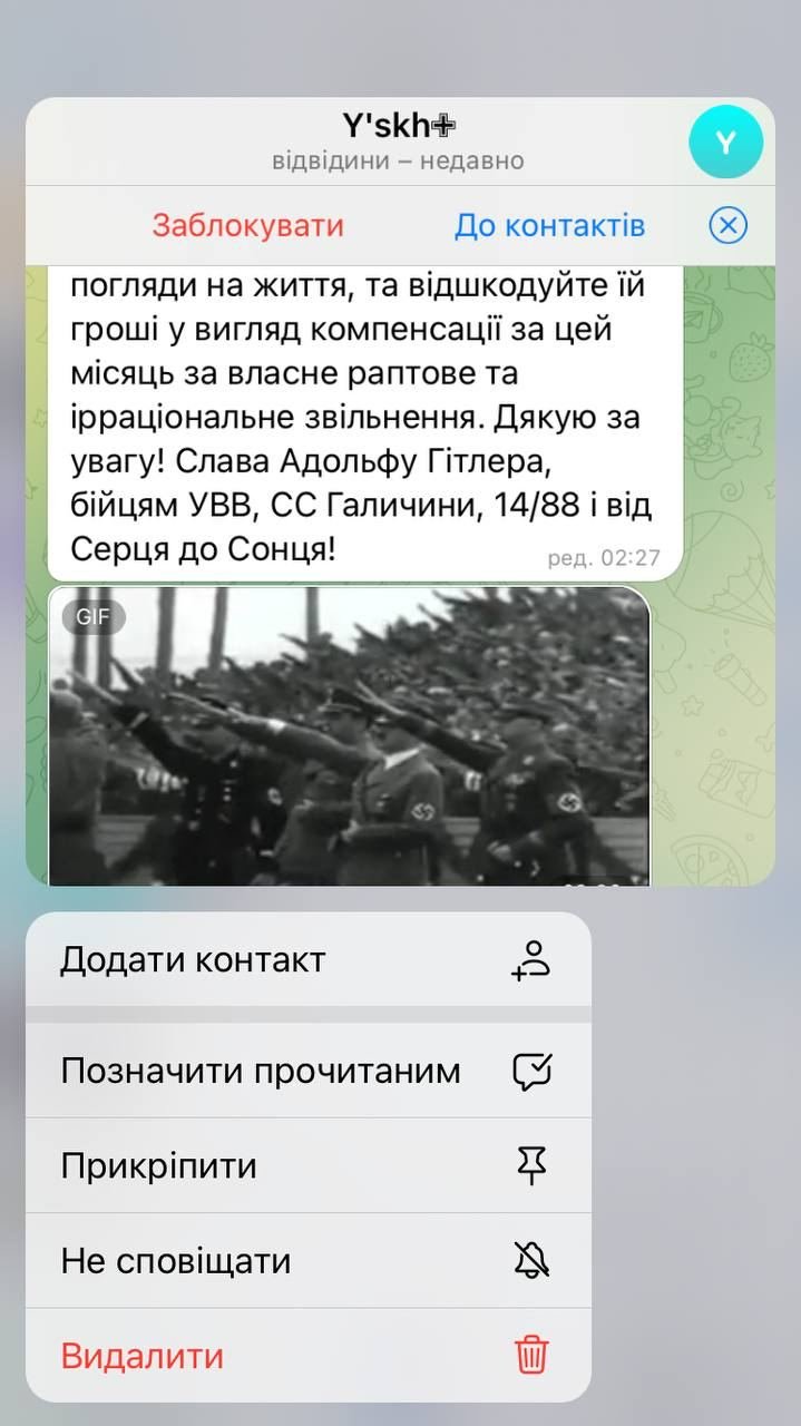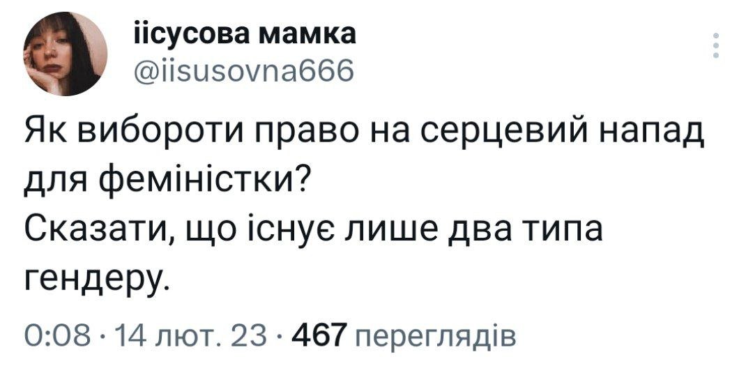 «Мій тато військовий. Він знає про цю ситуацію. Він не зрозумів, в чому проблема. Я сказала, що проти фемінізму, бо це зараз це ні*рена не фемінізм, бо це презумпція вини чоловіків. Ті, хто скаржився, навіть не ходять в цей заклад. Одна з Львівської області. Інша, як я її називаю, рижа мавпа, яку троха перекосило. Я взагалі не знаю, звідки вона. Інші, хто коментував це відео, це фанатки цих двох. Це історія не про мій хейт і ненависть до когось. Вважаю, що сучасні феміністки гірші за русню. Це факт і цього не зміниш», – обурюється дівчина.