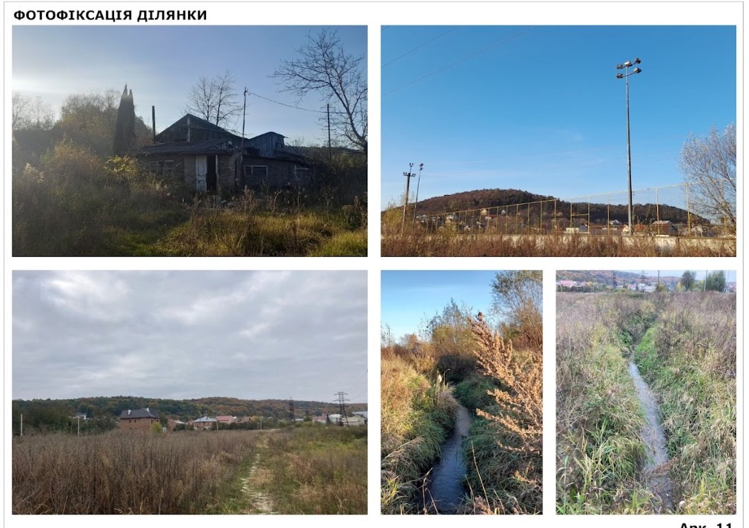 Детальний план охоплює територію загальною площею 3,74 га, куди входить 21 ділянка комунальної та приватної власності. На території розташовані дачні будинки та закинутий млин, що не працює понад 40 років. Також тут протікає річка Марунька та розташовані два технічні озера.