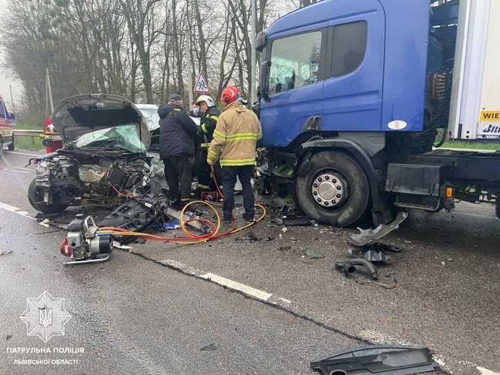 Як повідомили в патрульній поліції Львівщини, аварія сталася близько 6:00 на трасі Київ-Чоп біля населеного пункту Кізлів, що за 8 км від Буська. Внаслідок ДТП Renault Megane та вантажівки Scania травмувався неповнолітній хлопець, жінка-водій легковика загинула на місці події.