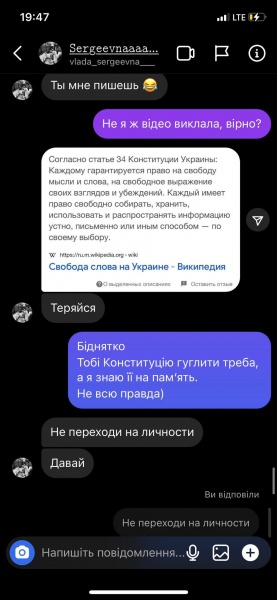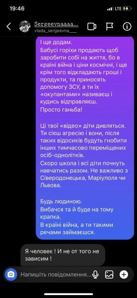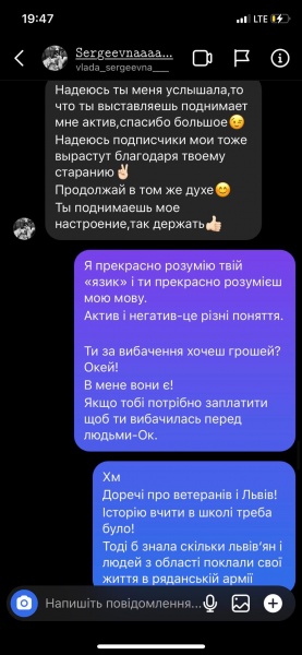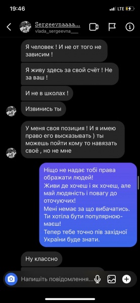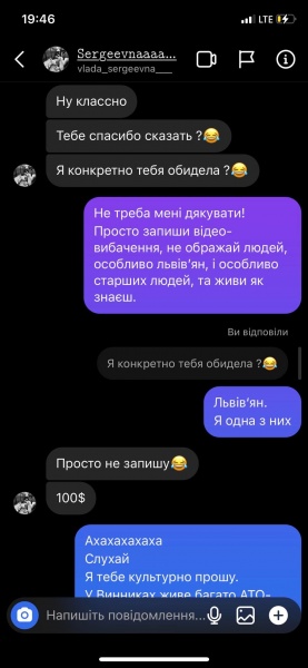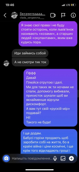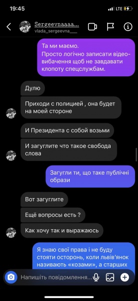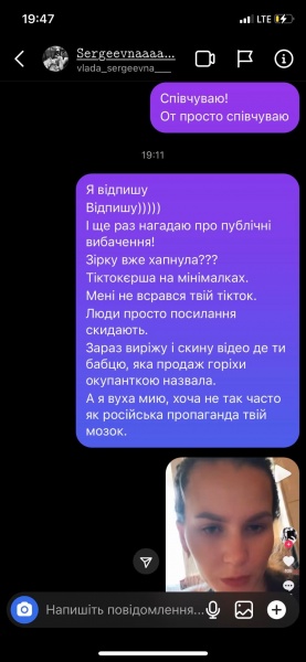 Львів’янка разом з іншими активістами звернулася до жінки з ніком “vlada_sergeevna” з проханням видалити записане в ТікТок відео з обурливими, на переконання громадян, словами про українців, і записати нове з вибаченнями, щоб запобігти можливому “самосуду”.