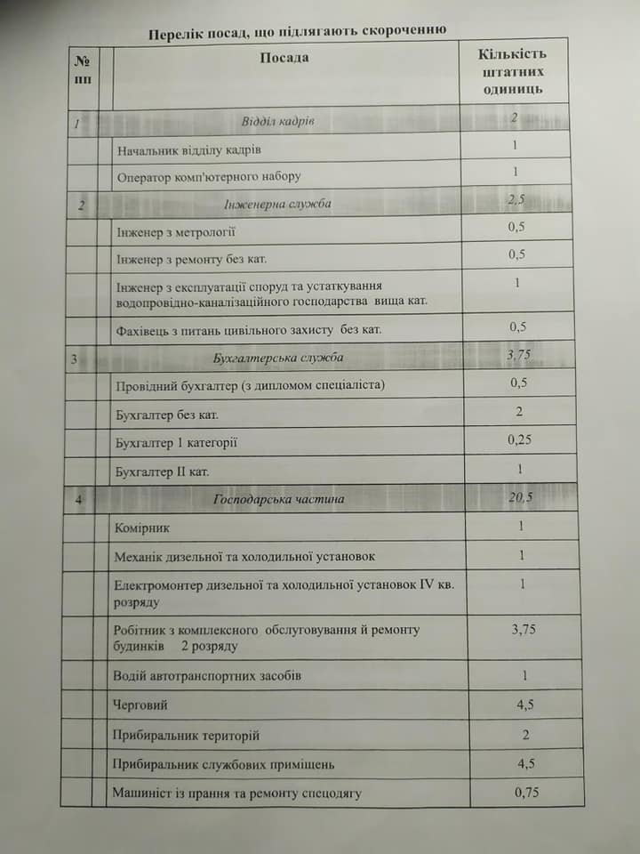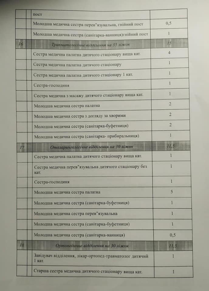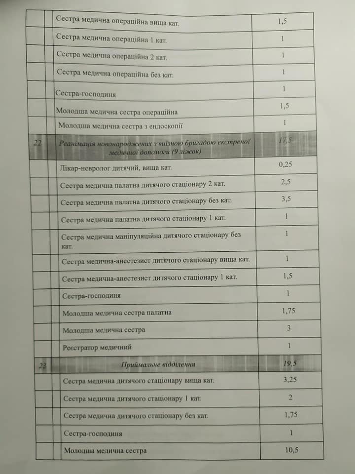 У цьому списку (див. нижче) мова йде переважно про скорочення молодшого медичного персоналу, окрім того, планується скорочення близько 60 технічних працівників і дев’яти лікарів.