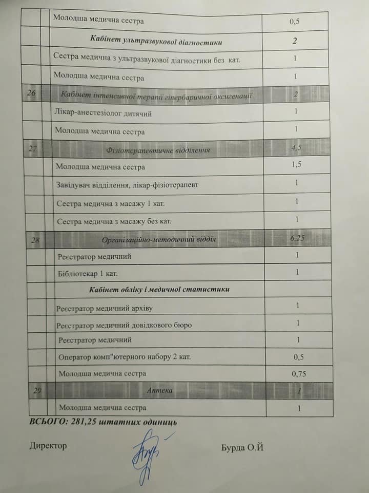 «У нас лікарня була розрахована на 420 ліжок, був відповідно розрахований персонал. На сьогоднішній день вже більше року ми маємо 320 ліжок. Персонал залишився той самий. Є потреба реорганізації, тому що нам не вистачає коштів. Наразі ми нікого не скорочуємо, ми думаємо, зустрічаємося, ведемо переговори. Це наші економісти порахували, що по грошах пасувало би таку частину посад скоротити. Це їх думка, це не означає, що буде таке скорочення», – розповіла Олександра Бурда.