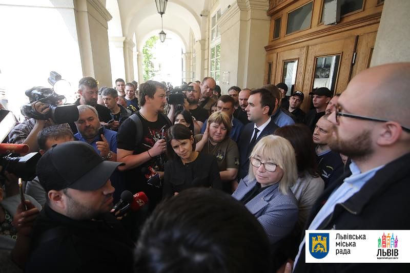 До протестувальників вийшли керуюча справами виконкому Марта Литвинюк, директорка юридичного департаменту Гелена Пайонкевич та директор департаменту «Адміністрація міського голови» Євген Бойко. Конструктивної розмови не вийшло.
