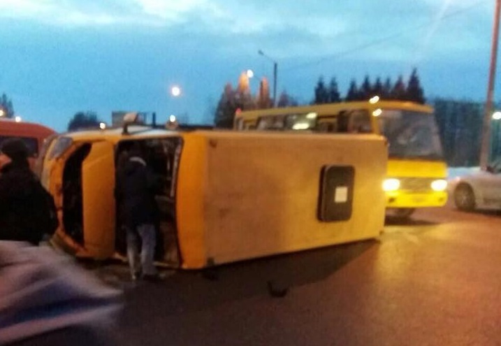 Водій маршрутки пан Ігор розповів ZAXID.NET на місці події, що рухався по головній дорозі, а бус виїхав з бічної. Від удару маршрутка перекинулася на бік.