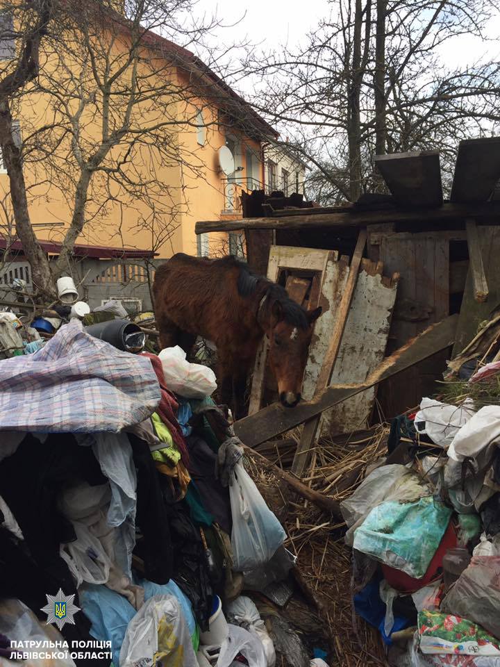 Екіпаж патрульної поліції отримав повідомлення від небайдужих громадян про те, що в населеному пункті Брюховичі, в одному з приватних дворів стоїть кінь в дуже поганому стані. Патрульні прибули на місце та після довгих пошуків виявили коня, він стояв на подвір’ї та дійсно дуже погано виглядав.