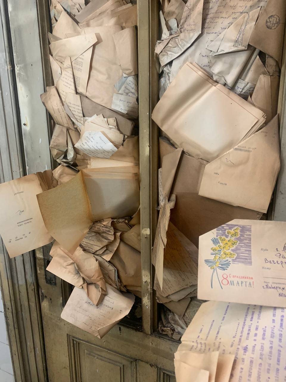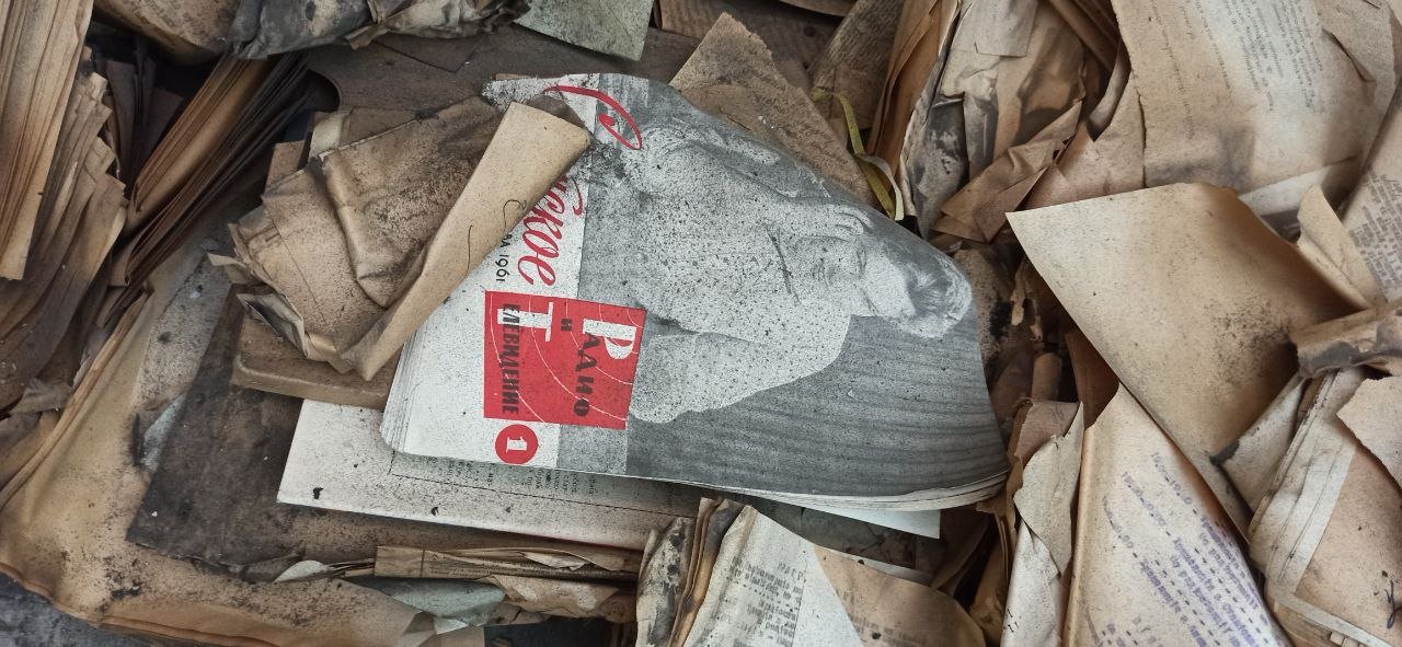 «Знайшли це все між двома дверима, у дверному отворі й так само між подвійним вікном. Ми прибирали у тому приміщенні, бо воно в досить занедбаному стані. Коли почали все відкривати, то побачили, що поміж всім є якісь папери. Почали розбиратися і виявилось, що міждверні й міжвіконні ніші просто забитті паперами різного типу. Колись працівники телерадіокомпанії так ущільнювали будівлю. Знахідка має стосунок і до будинку, і до спадщини радіо, яке там було. Об’єм матеріалів дуже великий. Це дуже дивний набір різних матеріалів, який ситуативно виявився замурований у приміщенні. Частина матеріалів в дуже поганому стані – практично сиплеться. Проте дуже багато в доброму», – сказав Андрій Лінік.