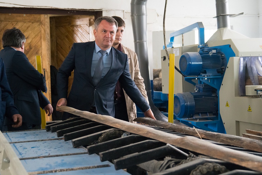 Під час відкриття нових потужностей ДП «Буський лісгосп» Олег Синютка випробував, як працює нова лісопильна лінія (серпень 2017 року, фото ЛОДА)