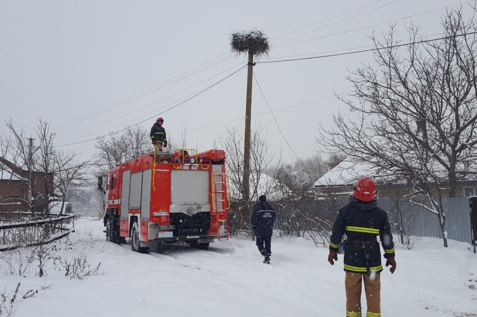 “На виклик прибули рятувальники, котрі розмістили неподалік місця перебування лелек солому та насипали корму, аби птахи мали де зігрітися та чим поживитися”, – йдеться у повідомленні.