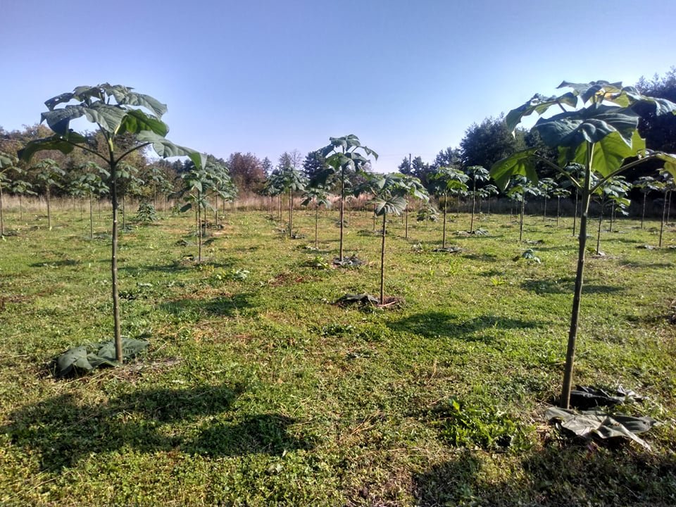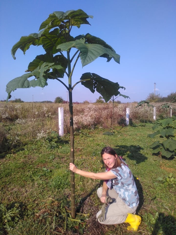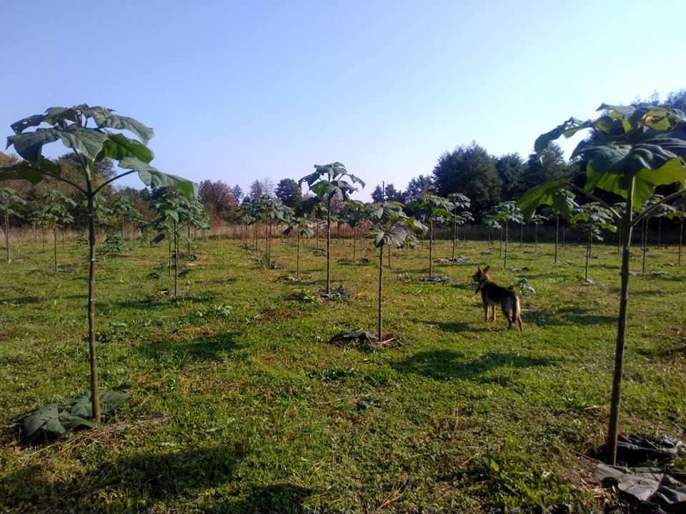 «Ми посадили понад 50 горіхів, вони вже ростуть три роки. За рік-два почнуть давати плоди. Також посадили 200 дерев павловнії. Це дерево, яке дуже швидко росте. Його недавно почали вирощувати в Україні. Це своєрідний експеримент, бо невідомо, як рослина поведе себе в наших умовах. Ми купили в розпліднику сертифіковані саджанці морозостійкого сорту. Вже за 5 років можна отримати сировину, пустити на дошки. Особливість цього дерева, що після зрізу воно ще два-три рази відростає. Потрібен догляд, але, навіть якщо воно не досягне таких параметрів, які потрібні для зрізки на сировину, то це дерево-медонос. Тому ми плануємо поставити тут пасіку. Листочки з цього дерева дуже люблять їсти наші овечки», – розповідає Юля.