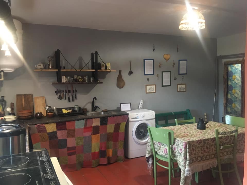Але поживши у такому ритмі деякий час, зрозуміли, що село не готове до усіх нововведень, які вони пропонували. Тож почали облаштовувати та змінювати власний простір. Поруч зі своїм подвір’ям Олійники придбали ще один будинок, у якому створили хостел Gogo-Mogo. У будинку є дві кімнати, кухня, душ та туалет. Тут часто зупиняються волонтери, друзі та гості.