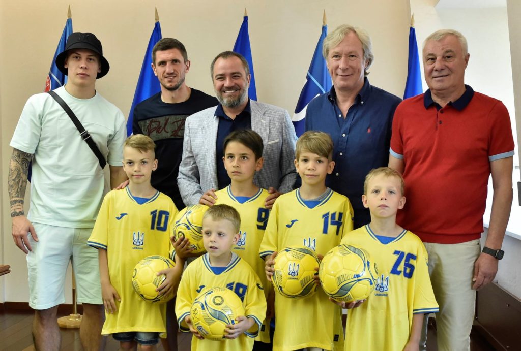 “Відео з п’ятьма малюками, які на старому футбольному майданчику перед початком гри виконують «Ще не вмерла України…», облетіло і зворушило всю країну. А ще це відео найкращий доказ того, наскільки важливу соціальну і патріотичну місію виконує футбол у вихованні маленьких громадян України. Сьогодні ці юні патріоти, які лише роблять перші кроки у футболі, на моє запрошення побували в Будинку футболу. Це 9-річний Євген, 8-річні Максим і Кирило, 7-річний Іванко і його 4-річний братик Матвій, в якого, судячи з нестримної енергії, найбільший потенціал майбутньої футбольної зірки України.