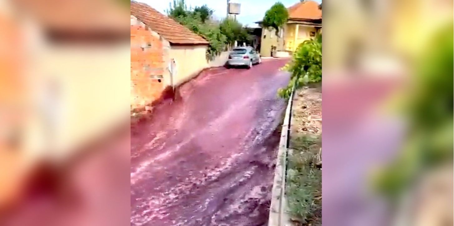 На них видно, як схилом однієї з міських вулиць мчить бурхливий потік вина, внаслідок чого вона перетворилася на справжню річку.