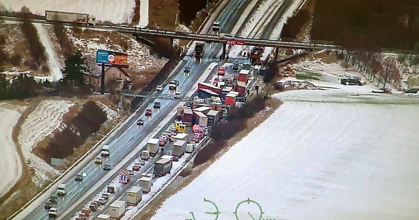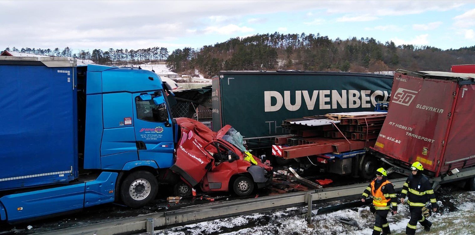 Масштабна ДТП сталася 20 січня на засніженій трасі D5 біля чеського містечка Жебрак. Черга розбитих автомобілів (20 легковиків та 16 вантажівок) простяглася на 150 метрів, за нею утворилися затори. Постраждали шестеро людей, двох з яких із травмами середньої тяжкості доставили гелікоптером до лікарень Праги. Поліція припускає, що причиною такої ДТП стала несподівана снігова хуртовина.