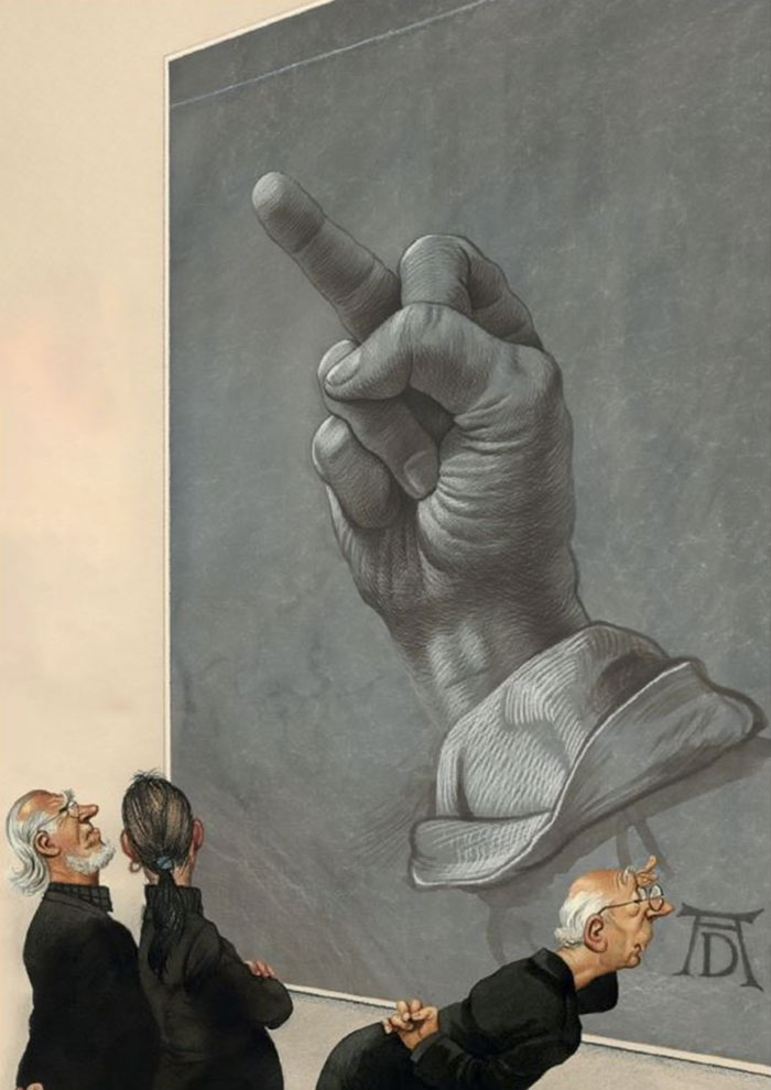 Герхард кинув прибуткову роботу і зосередився на кар’єрі художника-сатирика. Тепер його сміливі роботи не шкодують нікого. Вони болісно б’ють по самолюбству кожного, хто впізнає в них себе.